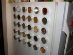 cutiutele magnetice de genul celor de pe frigider se gasesc in Bucuresti la magazinul Demmer Tea de unde imi cumpar eu ceaiurile si costa 11 lei cutia goala :). Fucks are cateva tipuri de condimente in aceste cutii si costa 10 lei. La Kaukland se gaseste o banda magnetica de care se atasaza cutiile si se poate prinde de dulapuri, usi, faianta, etc. Eu pentru ca am frigiderul pe hall, stau cu chirie si nu-mi permit sa fac modificari am gasit solutia sa prind banda de fundul dulapului. Deocamdata am doar 5 cutiute.