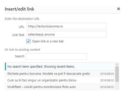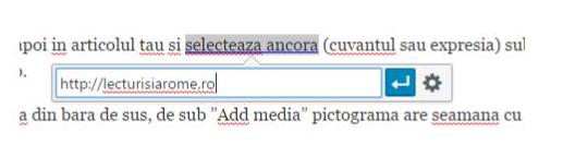 2. Intra pe apoi in articolul tau si selecteaza ancora (cuvantul sau expresia) sub care vrei sa pui link-ul copiat si selecteaza-o.