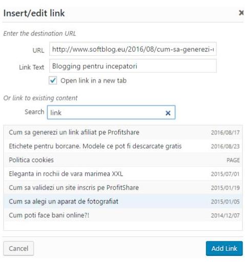 - Apasa apoi pe butonul ”Add link” si link-ul tau va fi inserat.