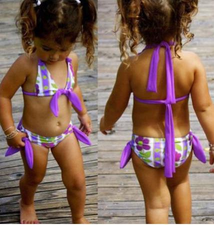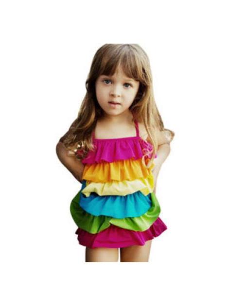 1. model de costum de baie pentru fetițe de-a întregul, cu volănașe