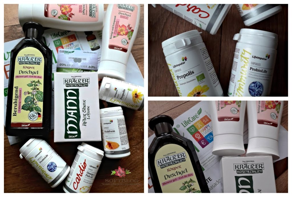 Acestea sunt: Life Impulse ProbioLife, Life Impluse Diab Form, Life Impluse ECO Propolis și Omega 3 Fish Oil. Din categoria produselor de îngrijire a corpului mi-am comandat un gel de duș cu roiniță BIO Krauter, gel de dus cu trandafiri Krauter și, pentru soțul meu un after Shave Krauter Mann.